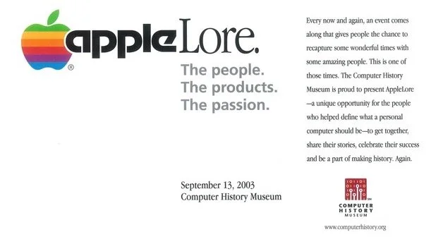 The AppleLore committee met with the Computer History Museum for months on planning for a theme, activities, and venue. They kept telling us to hold off, and we thought we might be stuck holding it in their storage warehouse or at Moffett Hangar One. But at the last minute they unveiled their newly-purchased building on Shoreline at 101, formerly the SGI marketing space. It was roomy, it was empty, and it was theirs. We inaugurated it with our third reunion on September 13, 2003.